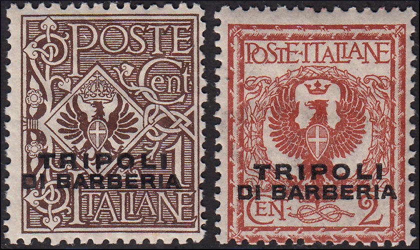 MMOCC_12 - 1915 - Floreale c. 1 bruno e c. 2 rosso bruno soprastampati Tripoli di Barberia nuovi gomma integra (11/12)