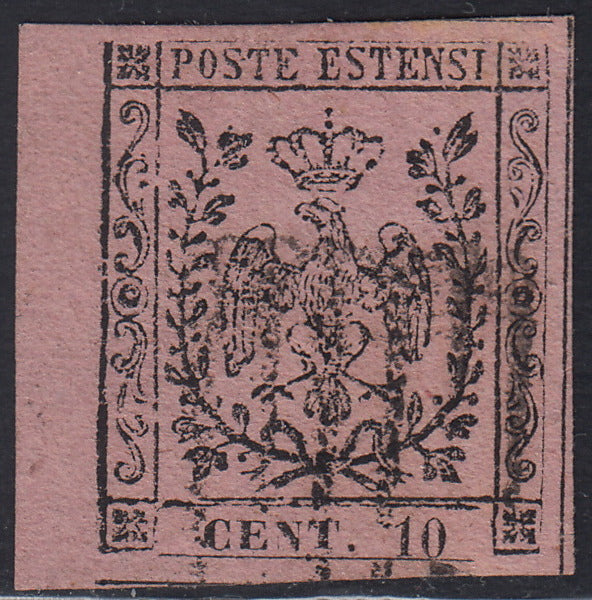 1852 - Aquila estense, emissione senza punto dopo la cifra, c. 10 rosa chiaro usato