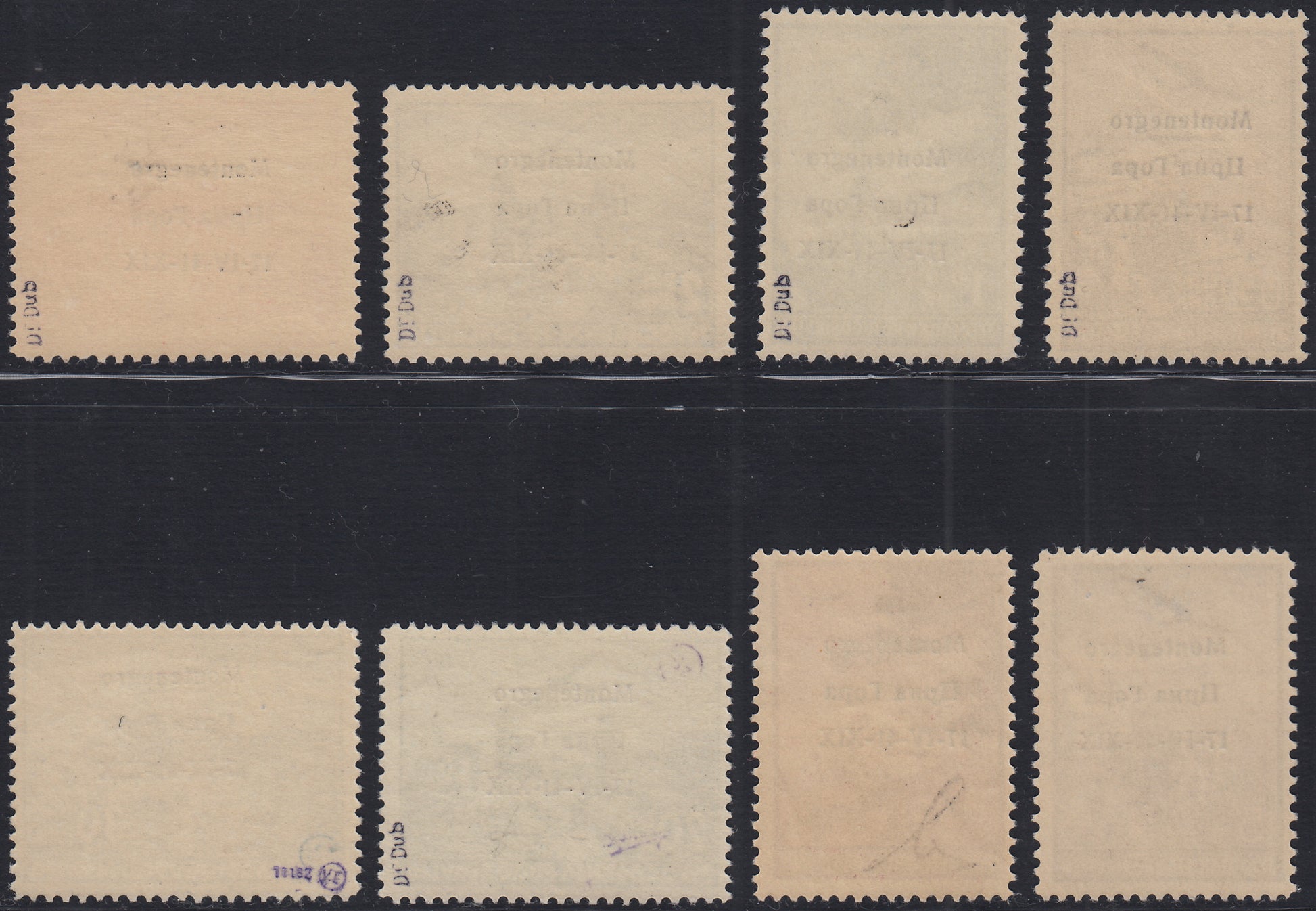 Monte40 - 1941 - Occupazione Italiana del Montenegro, francobolli di Posta Aerea di Jugoslavia con soprastampa "Montenegro 17-IV-41 - XIX" nuovi integri (A1/8)