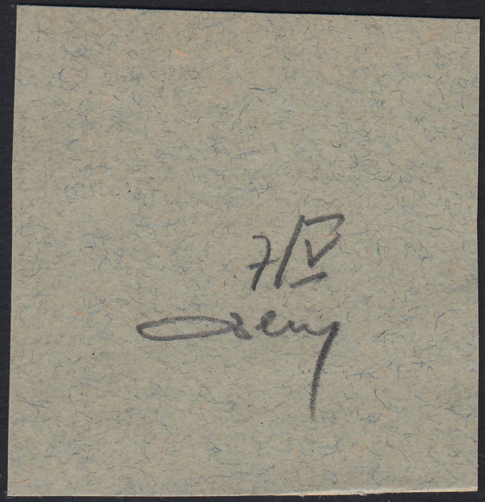 ND123 - 1918 - Francobollo d'Ungheria "Mietitori", 6 filler verde azzurro, soprastampa a mano FIUME del V tipo, usato su frammento (7/V)