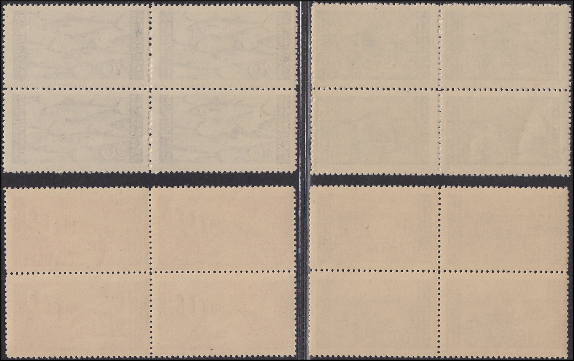 1945 - Emissione bilingue Tiratura di Zagabria, serie completa in blocchi di quattro esemplari nuovi con gomma integra