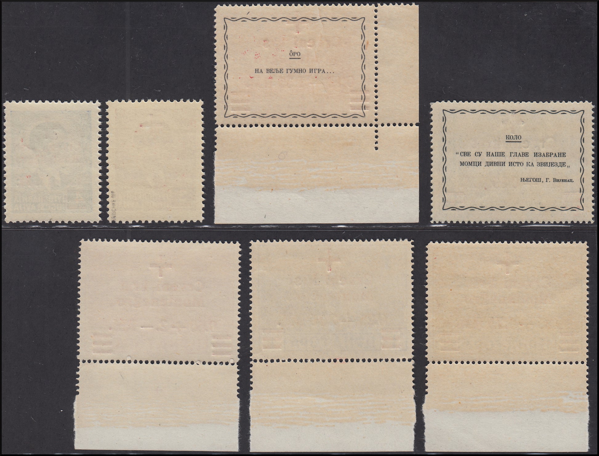 1944 - Occupazione Tedesca del Montenegro, francobolli di Jugoslavia soprastampati "Croce Rossa" e nuovo valore, serie di sette esemplari nuovi gomma integra