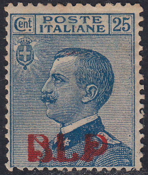 1921 - Michetti, c. 25 azzurro soprastampa BLP rossa del I tipo litografico nuovo con gomma originale.