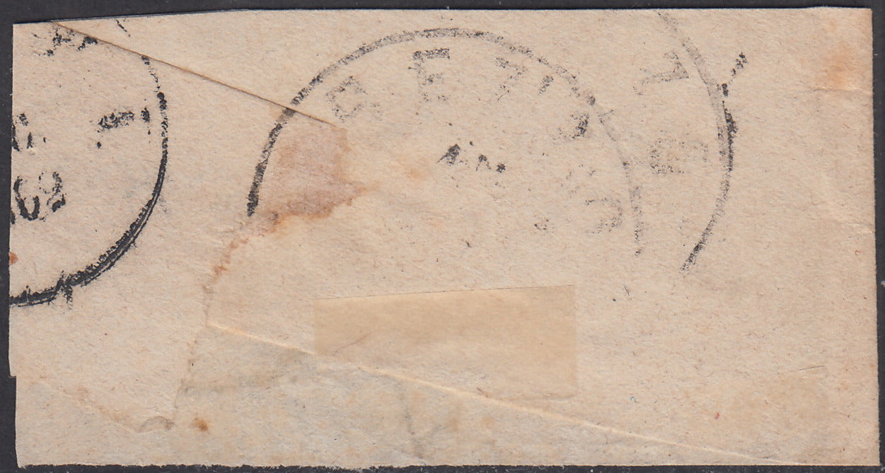 Sard317 - 1862 - IV emissione c. 10 giallo ocra II tavola usato su frammento, gradazione di colore molto bella (14Dd)