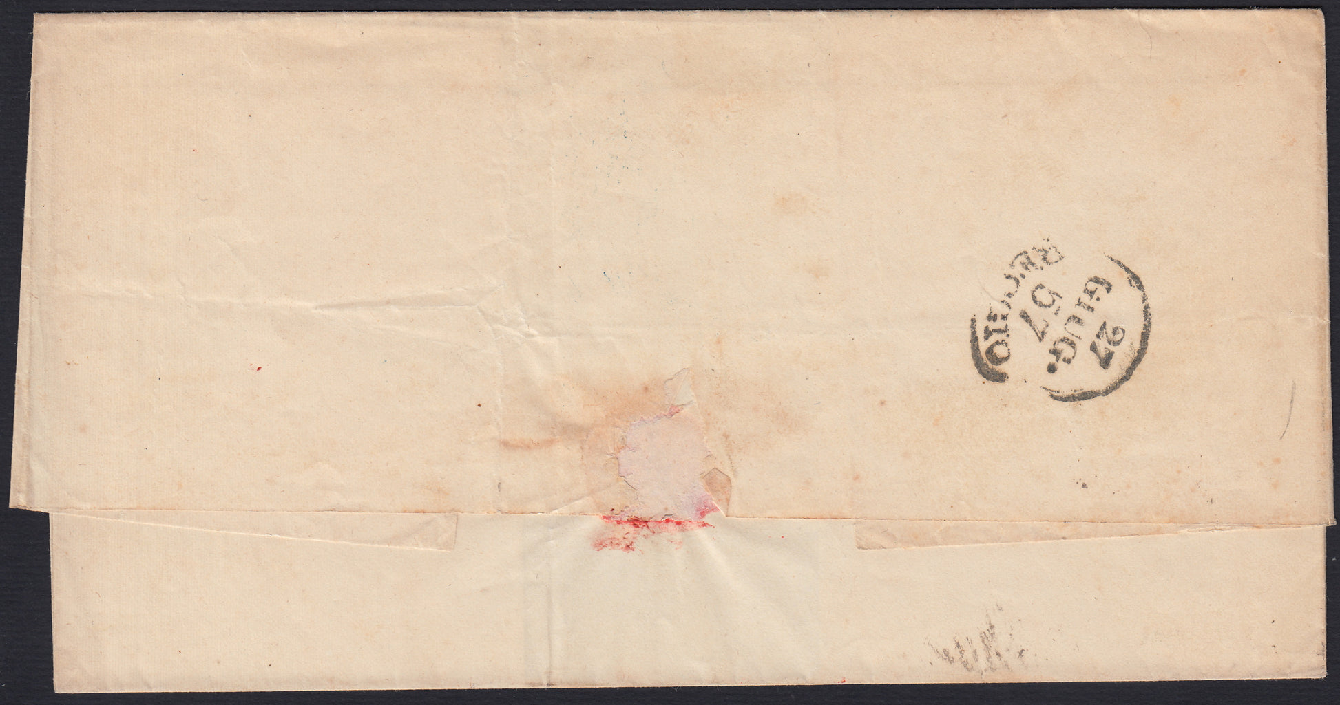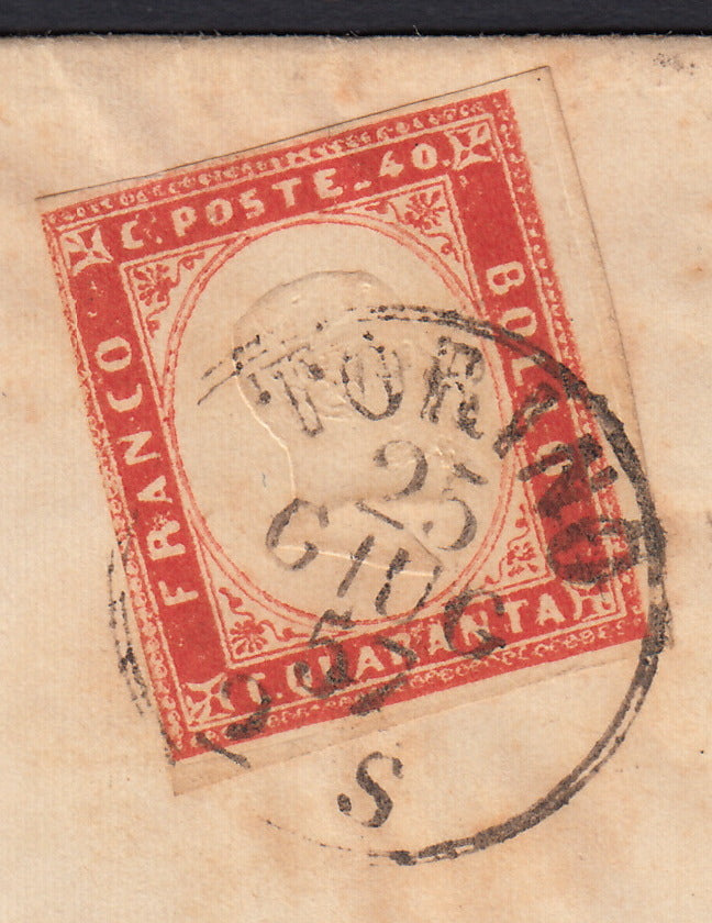 1857 - IV emissione c. 40 vermiglio I tiratura isolato su lettera da Torino per Reggio di Modena 25/6/57