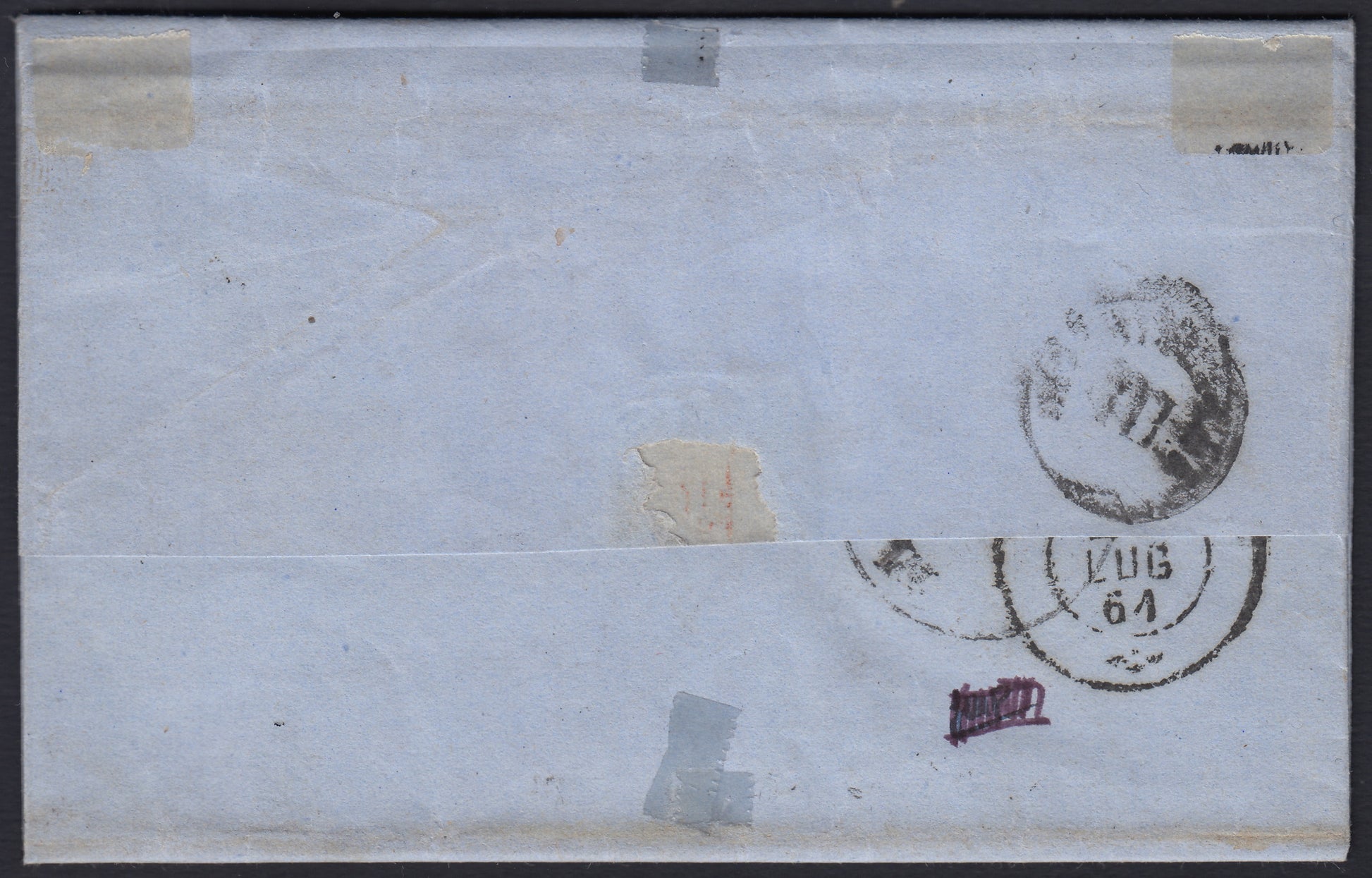 1861 - Lettera spedita da Casalmaggiore per Mantova 20/7/61 affrancata con c. 20 celeste grigiastro chiaro II tavola