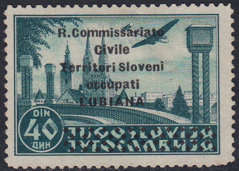 T123 - 1941 - Francobolli di Posta Aerea Jugoslava, 40d. verde con soprastampa "R. Commissariato Civile Teritori Sloveni Occupati LUBIANA" e strisce di rombi nuovo con gomma originale (9)