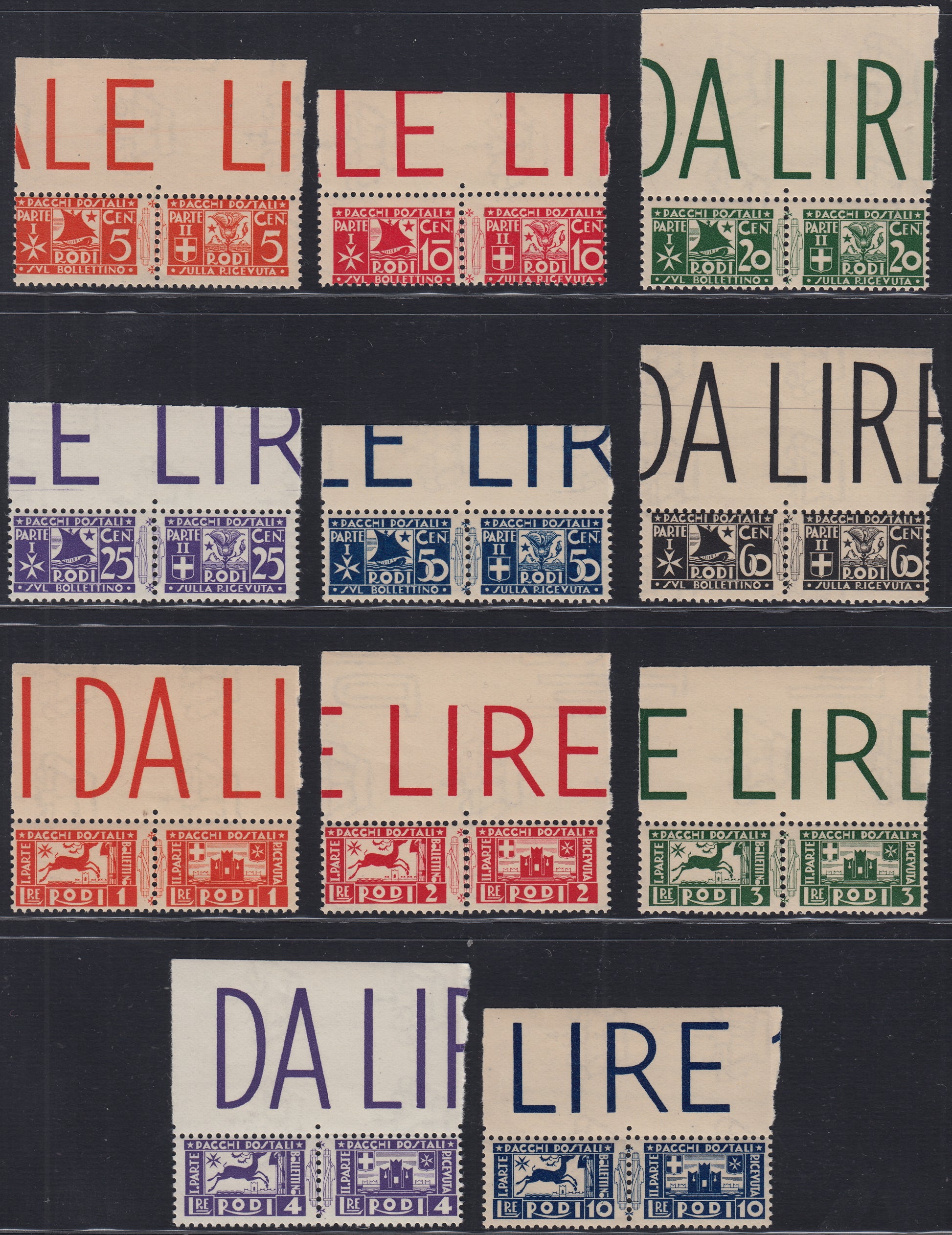 1934 - pacchi postali soggetti vari, serie degli 11 valori nuova con gomma integra