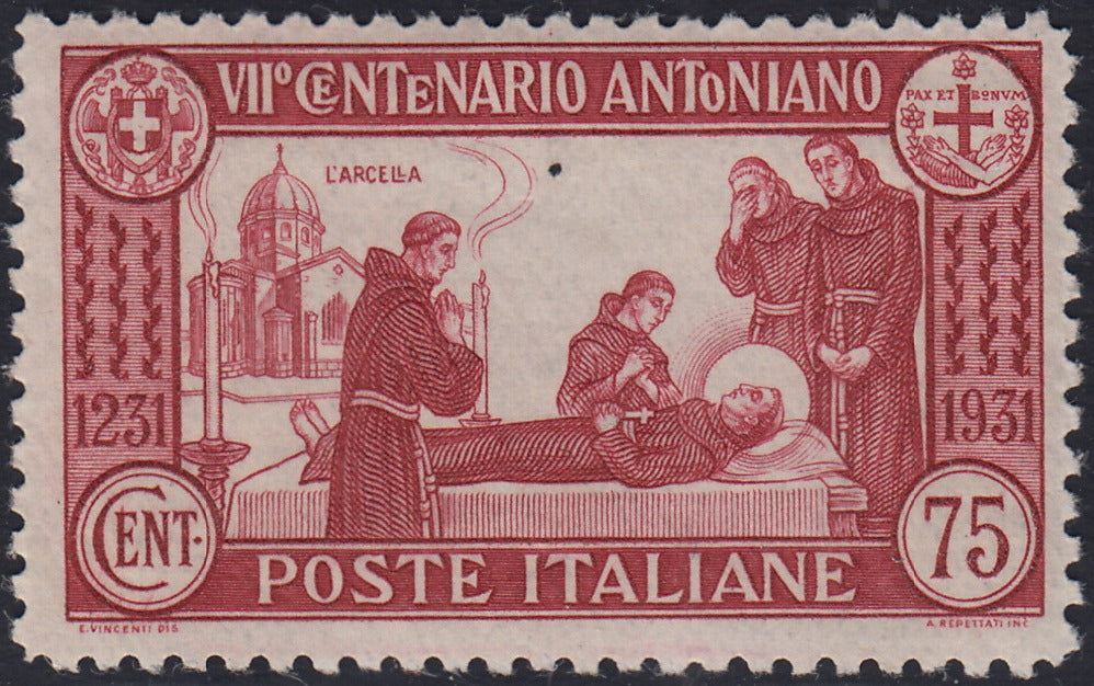1931 - S. Antonio, c. 75 carminio dentellatura 12 nuovo con gomma integra