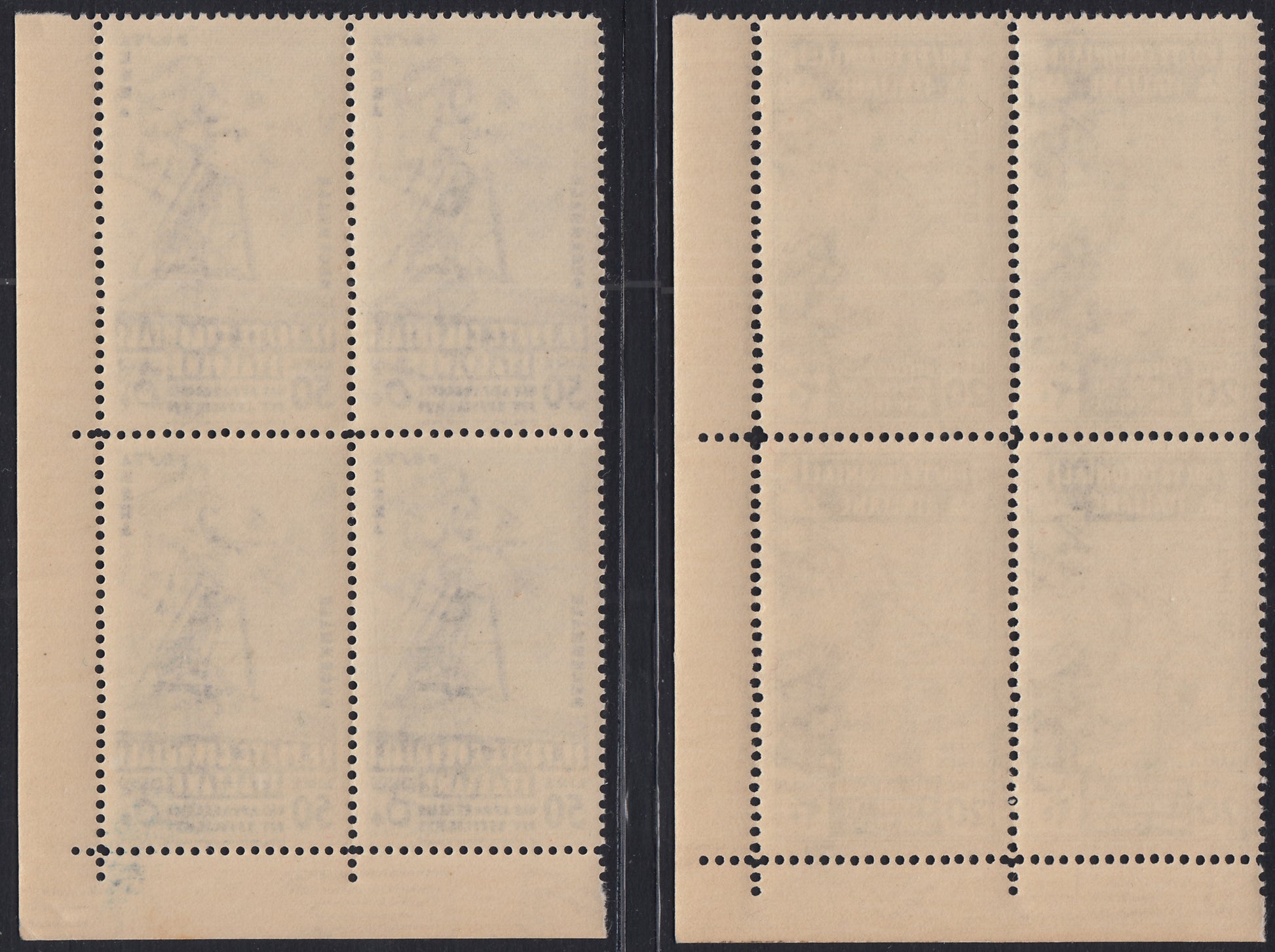 1933 - Decennale della Marcia su Roma, serie completa di Posta Aerea in blocchi di 4 esemplari nuovi gomma integra.