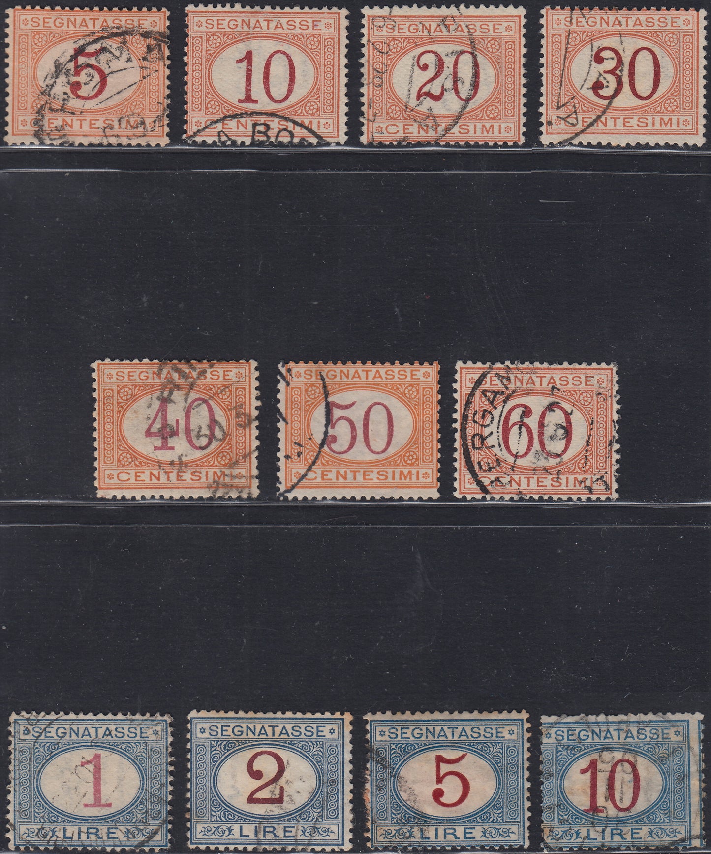 UT395 - 1870 - Segnatasse cifra del valorein un ovale e diciture orizzontali, serie completa, usata (3/14)