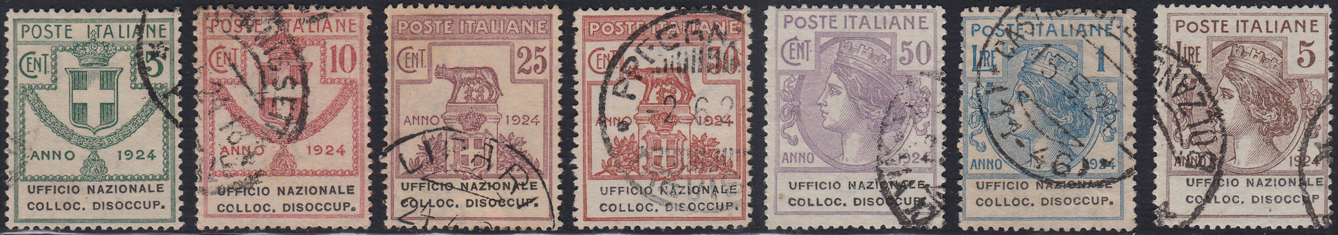 UT431 - 1924 - Enti Parastatali, UFFICIO NAZIONALE COLLOC. DISOCCUP. serie di sette valori usata con annulli originali (62/68)