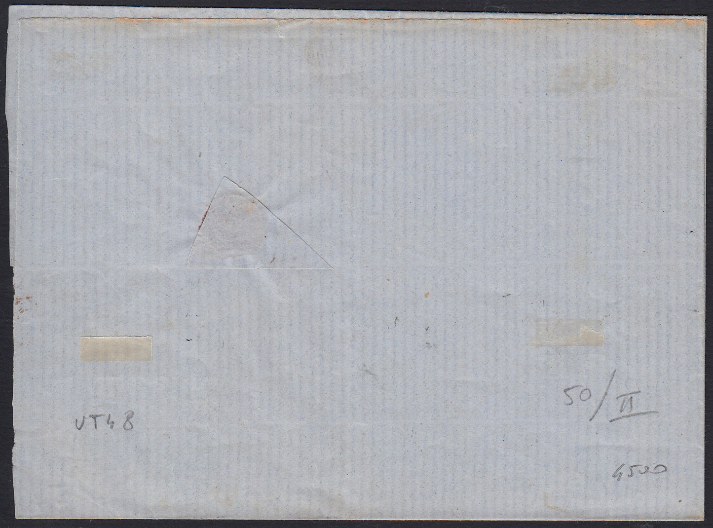 UT48 - Regno d'Italia 1863 c. 15 azzurro tipo Sardegna posizione n. 50 usato su gran parte di lettera diretta a Nizza (11, p.ti 13)