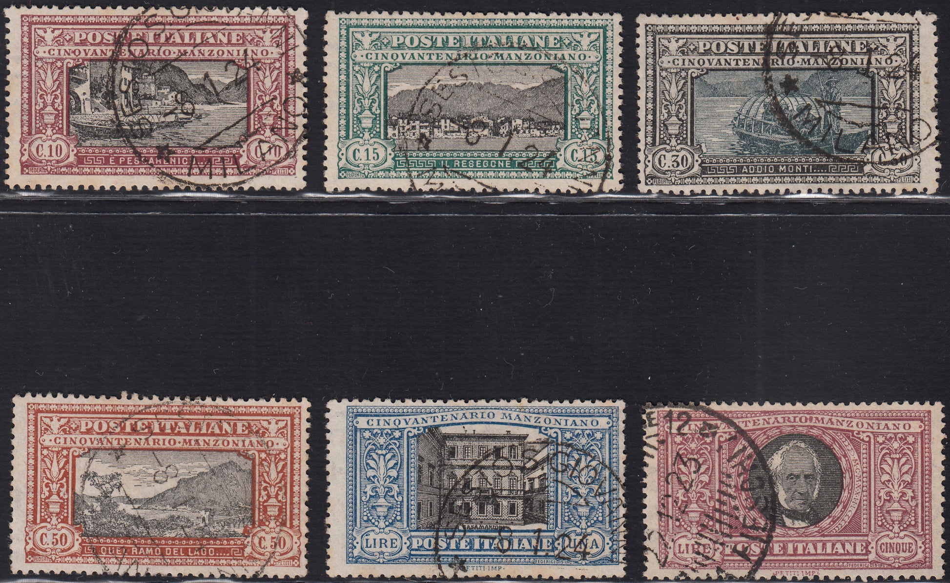 1923 - Cinquantenario della morte di Alesssandro Manzoni, serie completa usata di bella qualità con annulli originali.