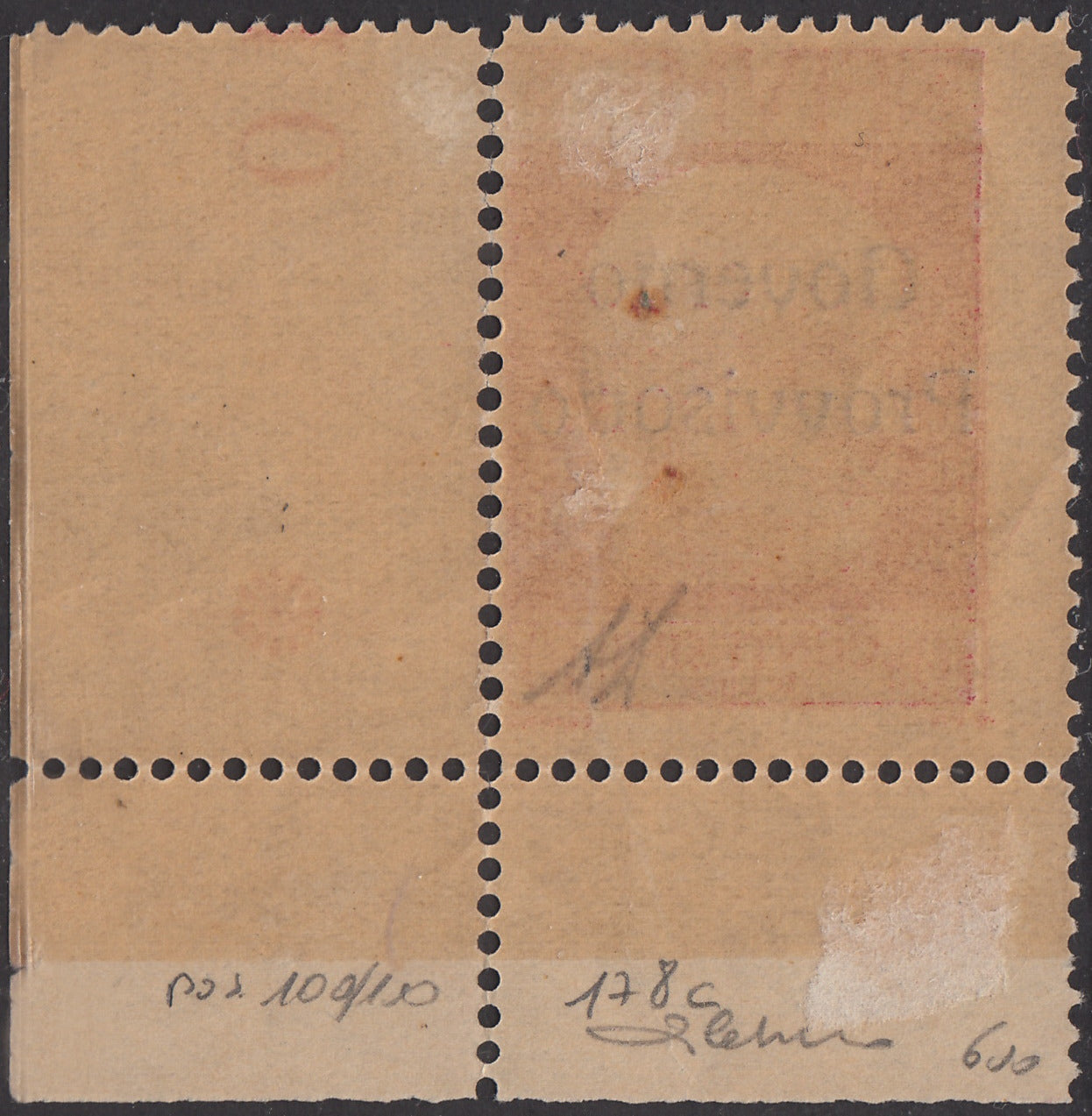 V581 - 1921 - Effigie di Gabriele d'Annunzio c. 10 carminio soprastampa "Governo Provvisorio" tiratura di Milano e con le tre "V" di tipo differente nuovo con gomma originale (178c)